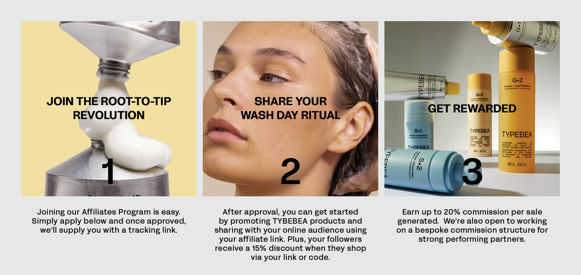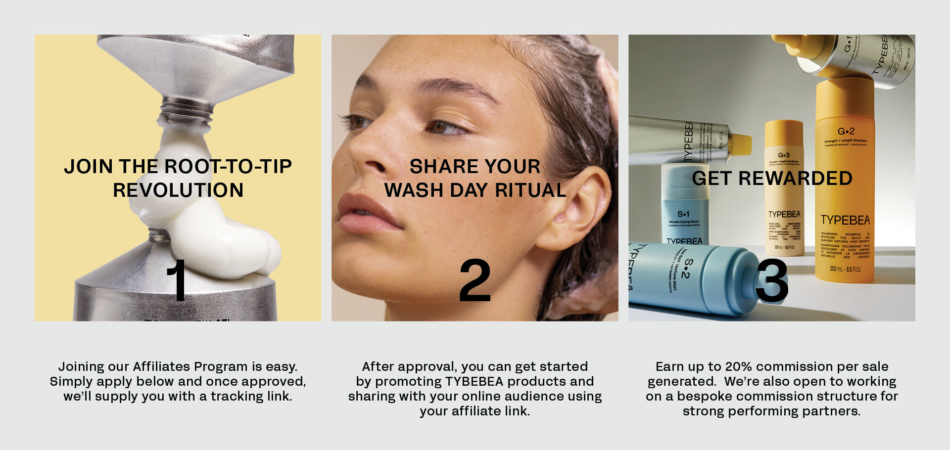 TYPEBEA is haircare that's about you. If you have an audience who you think will love TYPEBEA, you can write or post about us and earn commission when your followers buy direct from us.